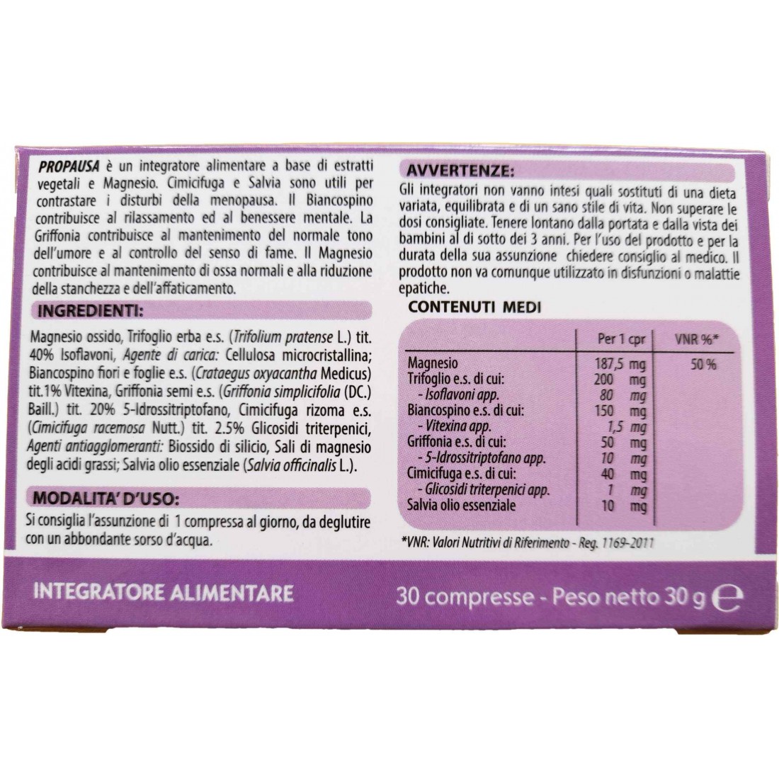 Fitobios Propausa contiene 30 compresse.