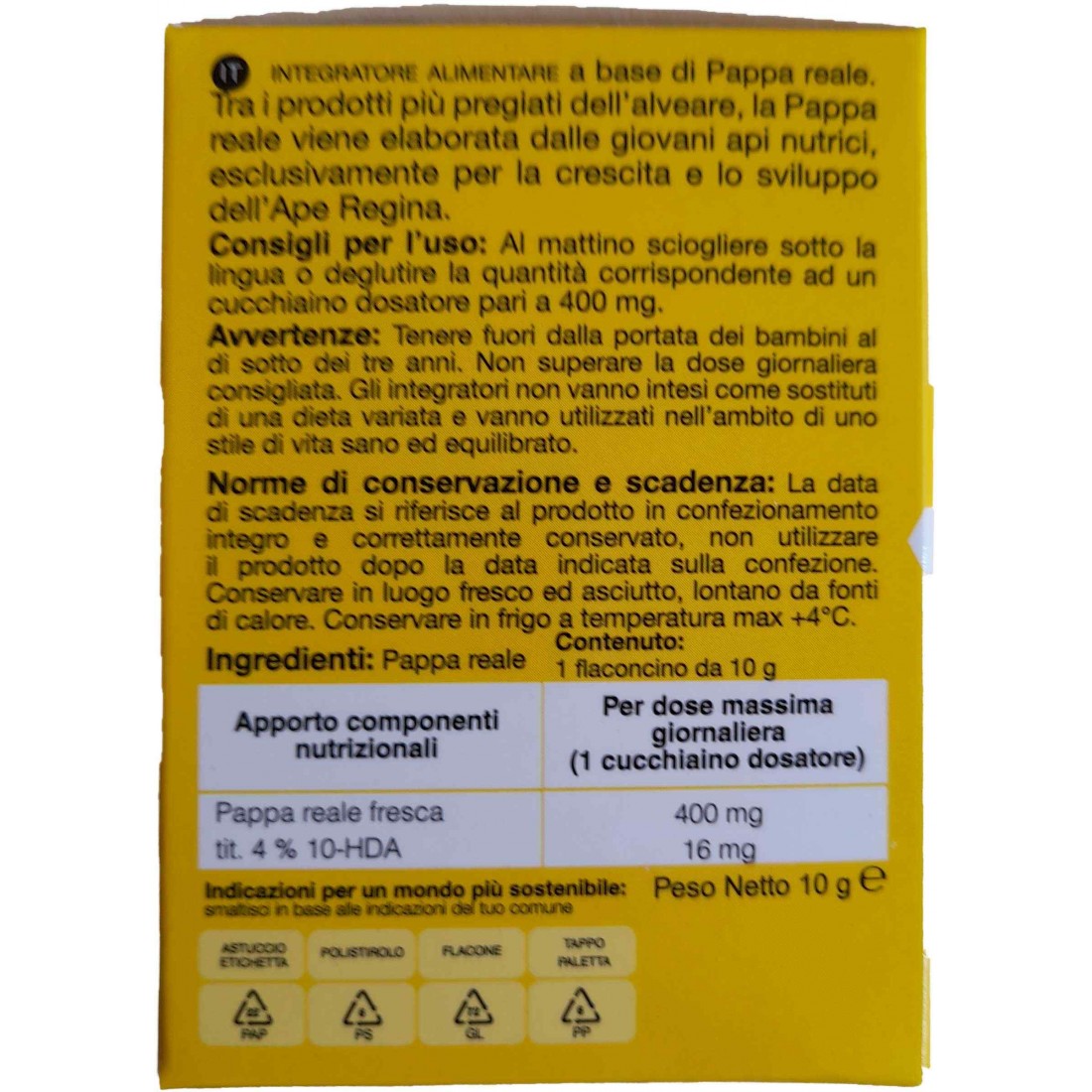 INGREDIENTI ALTA NATURA PAPPA REALE FRESCA