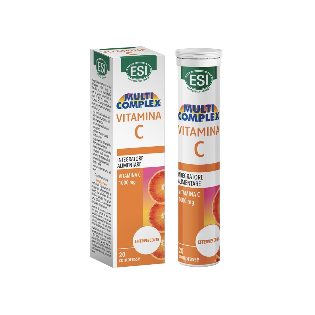 Esi multicomplex vitamina c contiene 20 compresse effervecenti gusto Arancia rossa.
