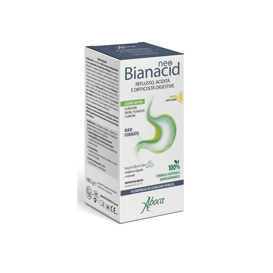 Aboca NeoBianacid è un prodotto a base di complessi molecolari vegetali e minerali, che svolge un'azione protettiva e, quindi, lenitiva della mucosa gastroesofagea utile per contrastare rapidamente il bruciore, il dolore, la sensazione di acidità, ovvero i sintomi tipici dell'irritazione e dell'infiammazione della mucosa stessa.