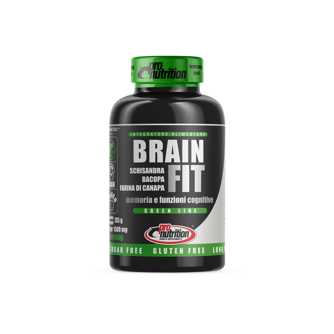 Pronutrition BRAIN FIT è un integratore alimentare a base di farina di semi di canapa, estratti secchi, vitamine e minerali. L’estratto di Schisandra ha proprietà antiossidanti, mentre la Vitamina E contribuisce alla protezione delle cellule dallo stress ossidativo. L’estratto di Bacopa favorisce memoria e funzioni cognitive e lo Zinco contribuisce alla normale funzione cognitiva. L’estratto di Schisandra ha anche un effetto tonico-adattogeno, mentre le Vitamine B6 e B12 contribuiscono al normale metabolismo energetico ed alla riduzione della stanchezza e dell’affaticamento. Infine lo Zinco e le Vitamine B6, B12 e D contribuiscono alla normale funzione del sistema immunitario. Il prodotto non contiene lattosio.